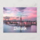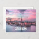 Esquina nocturna de la capital de Estocolmo, Suecia. Hermoso cielo rosa y morado en el agua.