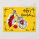 Diseño caprichoso de estilo retro con recuerdos de una fiesta española; guitarra de hierro forjado, ventilador de encaje y rosa roja. Un diseño de personalizable en blanco, negro, rojo y amarillo dorado para que puedas personalizar con tu propio texto, imágenes e ideas. Imagen original de arte digital.