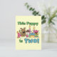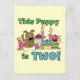 Diseño de cachorros Camisetas de 2º cumpleaños, trajes para el cuerpo, imanes, tarjetas, bolsas de té, botones de 2º cumpleaños y más con velas de cumpleaños, un adorable cachorro marrón, un gorra fiesta y muchos dulces de cumpleaños! El texto dice "¡Este cachorro es 2!".