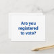 ¿Está registrado para votar? elección política, tarjeta postal de voluntariado para ayudar a registrar votantes.