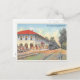 Boca Grande, Isla Gasparilla, Florida, reproducción de tarjetas postales de la estación vintage con el edificio de la estación, un tren en las vías, clientes de espera y autos vintage en el estacionamiento. La original tarjeta de ilustracion posteada probablemente fue de finales de los años 40 o principios de los 50. El texto de la parte superior puede editarse o eliminarse si lo desea.