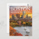 Disfrute del encanto de Boston en esta impresionante postal que presenta el icónico paisaje de la ciudad resplandeciente bajo una puesta de sol dorada. Las coloridas vegetaciones otoñales rodean el río Charles, donde elegantes veleros recorren edificios históricos de ladrillos rojos. Perfecto para los amantes, viajeros y coleccionistas de Boston, esta postal es un bello obsequio o regalo para todo aquel que aprecie la belleza intemporal de Nueva Inglaterra.