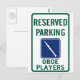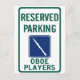 Cartel de estacionamiento reservado para los oboístas. Disponible escrito de la manera REAL (hautbois) o la manera común (oboe).