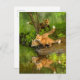 Estados Unidos, Minnesota, Sandstone, Minnesota Wildlife Connection. Tres kits de zorros rojos, dos sentados en la roca reflejados en el borde del agua, mirando con atención hacia adelante. | Rona Schwarz / DanitaDelimont.com