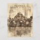 Esta postal de viaje, en forma de boceto dibujado a mano, muestra una vista del viejo Estambul.