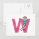 Ilustracion de un lindo niño personalizado trepando sobre una letra gigante W. Imagen disponible en varios regalos y productos. Postales.