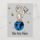 Adaptado después del eslogan "Ellos están aquí", este personaje esquemático en un globo que representa la Tierra en el espacio, acompañado por el lema "Estamos aquí" es un recordatorio gentil de lo afortunados que somos de tener un planeta tan hermoso y que deberíamos apreciarla y preservarla ya que ya estamos aquí.