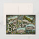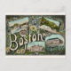 Una tarjeta postal de saludo vintage de Boston que destaca lugares emblemáticos como el estanque de la rana reutilizado en una nueva tarjeta postal.