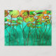 De una pintura acuarela original de un estanque con lirios. Arte sereno y verde que se aplacará. Bonita pintura de arte con colores verdes modernos.