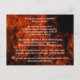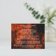 Esta postal presenta llamas para recordarnos el versículo de la biblia cristiana Santiago 5:13-16 que nos anima a orar cuando estamos enfermos o necesitamos perdón y a pedir oración y perdón a nuestra iglesia como parte de ese proceso. Porque la oración de una persona que vive en lo justo con Dios es poderosa y efectiva. Elías era un ser humano como nosotros. Oró fervientemente para que no lloviese, y no llovió sobre la tierra durante tres años y medio. De nuevo oró y los cielos dieron lluvia y la tierra produjo sus cosechas. Esta tarjeta es una excelente manera de memorizar versículos en la Biblia o meditar en la palabra de Dios de una manera alentadora. El versículo de la biblia cristiana está en un lado, y la dirección está en el otro.