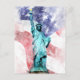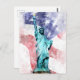 Estatua de la libertad iluminando el mundo en la ciudad de Nueva York con una bandera norteamericana en el fondo retrato de color de agua