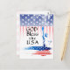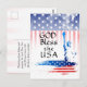 La tarjeta postal inspiracional representa la Estatua de la Libertad con un fondo de estrellas y franjas de la Bandera Americana y presenta la bendición, "DIOS Bendiga a EE. UU."~