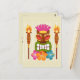 Estatua de Tiki, antorchas y flor de Hibiscus. Hora de verano. Tarjeta de invitación. Invitación de la fiesta de Luau. Ilustracion hawaiano.