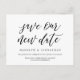 Este es el diseño estético moderno con el tema de la letra negra, invitación a fiesta de boda Postcard reprogramado (pospuesto/pospuesto) (Guardar nuestra nueva fecha) . Es la forma perfecta y elegante de hacer que la invitación sea una invitación reprogramada para sus amigos y familiares.