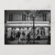 Imagen en movimiento borrosa de un hombre caminando frente a un restaurante por la noche en París. Fotografía en blanco y negro del estilo de vida y cultura parisino. Foto de viaje de Guay