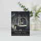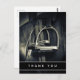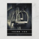 Gracias postal con una elegante fotografía en blanco y negro. Una imagen de una silla de cuero inglesa centrada en los arranques de plata. Perfecto para los amantes de la equitación en inglés.