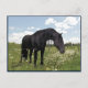 Un caballo negro estira su cuello barroco por debajo y por largo tiempo para tener una mejor visión a través de la valla. Esta fotografía parece que fue tomada con una lente de ojos de pez.