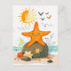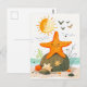 Postal Estrella de mar de dibujos animados en roca junto