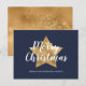 La moderna postal navideña Blue Gold Star Merry Christmas.