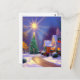 Esta postal en blanco presenta una brillante estrella sobre un árbol de Navidad en un pequeño pueblo lleno de decoraciones navideñas. Personalice la parte posterior con un saludo de vacaciones personalizado o una nota personal.