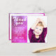 Estrella Cute Rosa Metallic Girly Feriada de cumpleaños. Gracias Postcard. El diseño tiene estrellas en un fondo rosado, morado y metálico. Inserte su foto en la plantilla y agregue el nombre de su hijo. Cambie el mensaje de agradecimiento si lo desea.