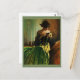 Estudio en negro y verde realizado por John White Alexander (Pennsylvania 1856-1915). La mujer idealizada, impasible, mostrada como si fuera un objeto precioso era un tema favorito del pintor. Aquí, una joven belleza se absorbe en poner un baudible o florecer en el cuello bajo de su elegante vestido de noche. El patrón sinuoso de rayas de la falda, las curvas de rodillas y hombros y el contorno del pelo trasnochado justifican la descripción de Alexander como "el pintor de la línea que fluye". Su deslumbrante cepillado es especialmente notable en el renderizado de las ricas telas y en el fondo, por lo demás, liso.