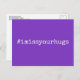 Postal Etiqueta me extraño tus abrazos de blanco en púrpu