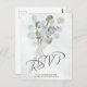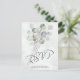 Estas hermosas postales RSVP presentan un diseño rústico de moda boho con un ramo de acuarela pintado a mano de hojas de eucalipto y flores de lavanda atadas con una cinta blanca y un arco. La parte posterior de la tarjeta es un formulario que los clientes pueden rellenar y devolver en el que se indica si pueden asistir o no, el número de invitados en su fiesta y sus opciones de comida. También hay espacio para introducir una dirección web para que los clientes puedan responder en línea si lo prefieren. Rústico, sencillo y elegante.