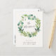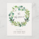Esta invitación, inspirada en la naturaleza, presenta una hermosa corona de eucaliptos y caligrafía moderna. La corona acuática incluye eucalipto y otros elementos verdes, y enmarca tu apellido escrito en elegantes letras de guión. A continuación, agregue su nueva dirección. En la parte posterior, puede escribir un mensaje personal a los destinatarios.