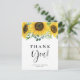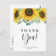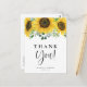 Envíe gracias a los clientes y clientes con este personalizable gracias postal. Cuenta con girasoles acuáticos y hojas de eucalipto. Personalice esta postal floral de agradecimiento añadiendo sus propios detalles de evento. Esta postal de agradecimiento a los girasoles es bodas de verano y otoño, duchas de novias, duchas para bebés y otros eventos.