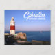 Postkarte mit dem Europa Point (Punta Europa) Lighthouse/Leuchtturm in Gibraltar. Gibratar liegt im Süden Spaniens (geographisch in Andalusien) und gehört zu United Kingdom.