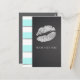 Postal de eventos Aqua Blue & White Faux Silver Shimmer Lips. Artículos coincidentes en mi tienda. Agregue el texto que desee.