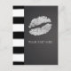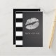 Tarjeta Postal del Evento de Labios con Brillo Plateado Falso de Raya Blanca y Negra. Artículos coincidentes en mi tienda. Agregue cualquier texto que desee.
