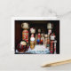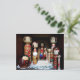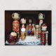Postal con una exhibición de muñecas kokeshi japonesas de madera.