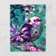 Postal Extracto De Extracto Ave Floral Verde azulada Púrp