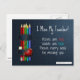 Un poema dulce para un profesor de un estudiante de Felicity Luckey de Snail Mail Poems™ para decir que te extraño. La postal tiene un fondo de denim con un corazón y lápices de colores.