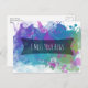 Esta postal audaz y brillante es perfecta para dejar una nota para saludar cuando no se puede visitar en persona. El fondo está recubierto de pinturas en tonos rosa, violeta, azul, verde azulado y verde. Sobre eso hay una insignia horizontal negra parcialmente opaca que domina el centro. El mensaje "Extraño tus abrazos" se presenta en un tipo de letra moderno e informal. Tanto el mensaje como el tipo de letra pueden cambiarse a lo que quieras que diga. Asimismo, con la superposición y el fondo separados, puede incluso optar por ampliar o volver a colocar esos elementos también. ¡Disfrútalo!