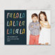 Envíe este magnífico saludo de la tarjeta de fotos de vacaciones a sus amigos y familia. Fa la la en letra escrita a mano en tonos pastel de color agua sobre un fondo azul oscuro