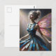 A fairy with pink and gold wings poses in a beautiful denim dress