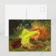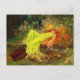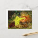 Postal con la pintura de Arthur Wardle A Fairy Tale (1895). Una joven de cabello largo y rojo usa un vestido amarillo y duerme en un bosque verde al lado del ciervo, un conejo y un pavo real. Un hermoso regalo para los amantes de los cuentos de hadas y los amantes del arte inglés.