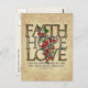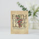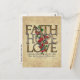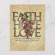 La fe espero amar los mercaderes cristianos y los regalos con las escrituras de la Biblia. El fondo antiguo beige con motivos florales de color rojo oscuro.