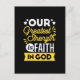 Show the world where your strength comes from with this bold Christian quote design: “Our Greatest Strength is Faith in God.” Featuring vibrant yellow and white typography on a black background, this faith-filled design is perfect for believers who want to express their trust in God with confidence and style. Ideal for Christian apparel, mugs, wall art, and stickers—great for youth groups, church events, or personal inspiration.