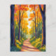 Fall Forest Path | Autumn Foliage Watercolor Nature Landscape Postcard