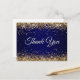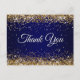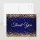 Postal Falso brillo dorado purpurina azul marino Gracias