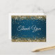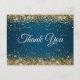 Postal Falso brillo dorado purpurina azul océano Gracias
