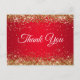 Crea tus propias tarjetas de agradecimiento elegantes para las fiestas. Falso brillo dorado con purpurina sobre un fondo degradado rojo brillante glamuroso. Todos los efectos brillantes y dorados de purpurina en este diseño moderno y femenino se crean con gráficos digitales. Un diseño creativo para tu celebración navideña.