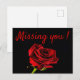 Una postal romántica de "Te extrañas" con una bella rosa roja sobre negro. El texto es personalizable. Sorprenda a su pareja o a su ser querido con una tarjeta como esta.