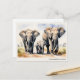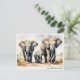 Esta elegante postal representa a una majestuosa familia de elefantes que atraviesa la sabana africana, en tonos suaves de azul y cálido dorado. La ilustración de vida silvestre captura la fuerza y el vínculo de la manada, lo que la convierte en una opción perfecta para papelería familiar personalizada. Personalice el texto debajo de la imagen para incluir el nombre de su familia, un saludo reflexivo o un mensaje de "gracias". Desde enviar una nota a un ser querido hasta buscar una tarjeta para una fiesta de bebé con tema de safari, esta postal de estilo acuarela ofrece un toque único y artístico.