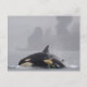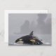 Una orca y su ternera nadando en la fresca mañana nublada.