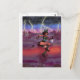 Postal fantasía acuarela pintar guerrera mujer luchar